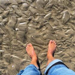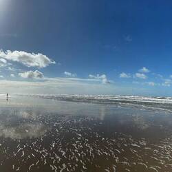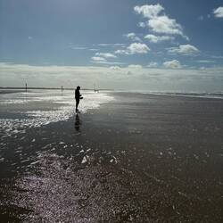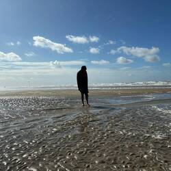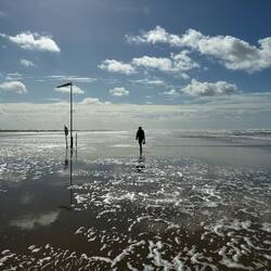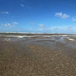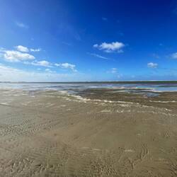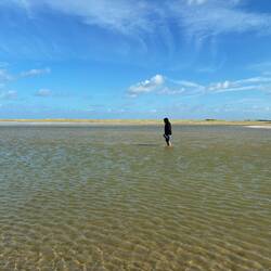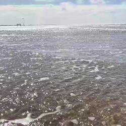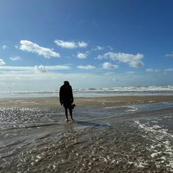 Wir machten einen ausgedehnten Spaziergang über den unendlichen Strand, der bei ablaufendem Wasser immer grösser wurde. Die Stimmung war speziell, da von der Nordsee her viele Wellen gegen das Ufer brandeten, aber gleichzeitig das Wasser zurückfloss.