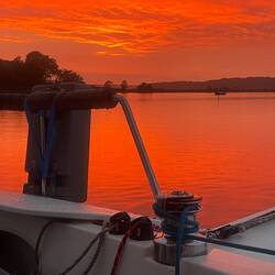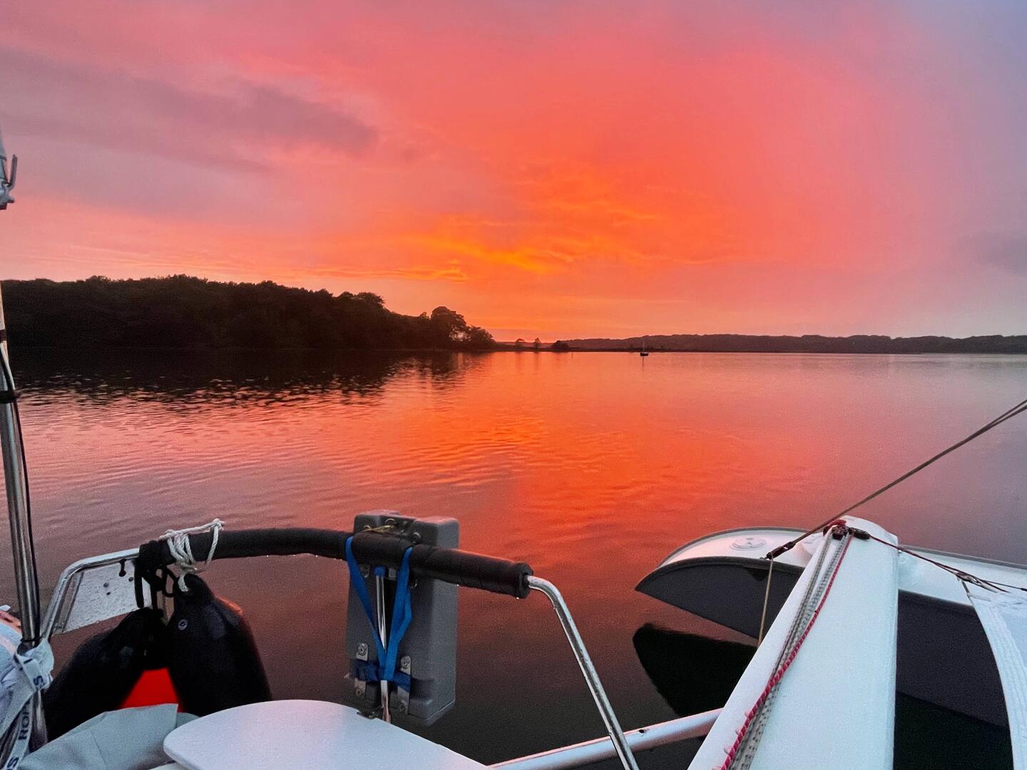 Ich hatte den Eindruck, dass der Anker nicht halte, aber der Ankeralarm zeigte mir, dass das Eisen fest im Grund war. So hatte ich einen schönen Sonnenuntergang und eine ruhige Nacht am Anker.