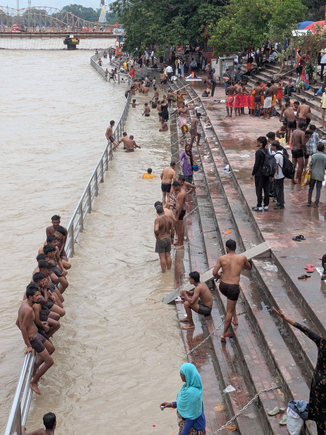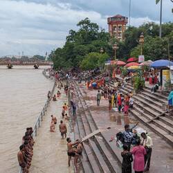 Heute eine ziemlich lange Autofahrt (Touristenbus) für ca. 250 km. Auf der Strecke lag Haridwar zu ein bekannter Heiliger Ort der Hindus für rituelles Waschen und Verstreuen der Asche der Czytaj więcej