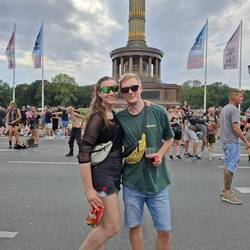 Am Samstag Mittag haben wir uns auf die anstehende Parade mit reichlich Bier und Sangria vorbereitet. Gestartet sind wir am Brandenburger Tor und liefen von da aus mit der Parade los zur Siegessäule.En savoir plus