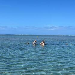 Baignade matinale en esquivant les requins et les coups de soleil. Un stop à l'iconique Chez Loulou, avant de déjeuner chez Papou Jacques pour son anniversaire 🎂