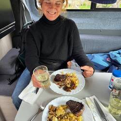 Als wir morgens aufgestanden sind, habe ich in dem idyllischen Garten erstmal geduscht 😂 und anschließend das Auto von Staub befreit. Anette hatte dann noch unseren Wasservorrat aufgefüllt undLeggi altro