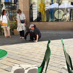 … stroke his head; *Čumil* is one of the most famous sculptures in Bratislava – a symbol of the city