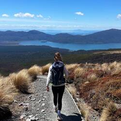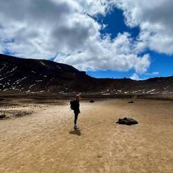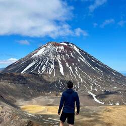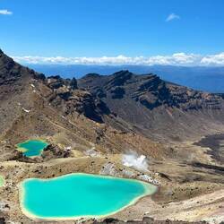 Die erste Nacht in unserer neuen Unterkunft war leider früh zu Ende, da wir für heute gleich eine lange Wanderung auf dem Programm hatten. Wir wollten den Wanderweg Tongariro Alpine Crossing absolvieren, der durch das Vulkanmassiv im Tongariro Nationalpark führt. Hierfür wurden wir bereits um 8 Uhr mit dem Shuttle an den Startpunkt gefahren und machten uns bei 5 Grad auf den Weg. Den ein oder anderen verwirrten Blick habe ich abbekommen, da ich der Einzige mit kurzer Hose war - hier wusste noch keiner, dass ich aufgrund fantastischen Wetters damit (mal wieder) voll ins Schwarze getroffen habe.