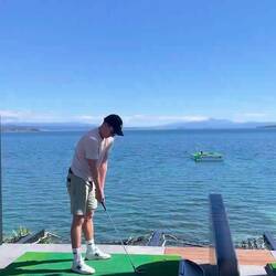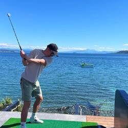 Nachmittags schlenderten wir noch ein wenig durch die Stadt Taupo, waren im eiskalten See baden und ich habe noch versucht durch einen perfekten Golfschlag 10.000 Dollar zu gewinnen. Ich muss hier auch keinen extra Spannungsbogen aufbauen, denn ich war sehr weit von einem Volltreffer entfernt. Michaela hat es nicht versucht, sonst hätten wir vermutlich noch einen Schläger zahlen müssen.