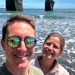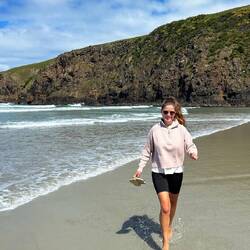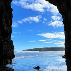 Am Nachmittag haben wir noch einen Wasserfall und im Anschluss die Cathedral Caves, riesige Höhlen an einem wunderschönen Sandstrand, besucht. Hier kam sogar der blaue Himmel ein bisschen zum Vorschein und wir hatten eine wundervolle Kulisse. Größte Herausforderung war dann nur noch auf einem Fuß stehend den anderen vom Sand zu befreien und anschließend direkt in Socken und Schuhe zu schlüpfen. Bei Michaela, deren Gleichgewichtssinn bedingt ausgeprägt ist, entwickelte sich dies zu einem richtigen Schauspiel, bei welchem sich die anderen Strandbesucher den ein oder anderen Lacher nicht verkneifen konnten. Zurück ging es dann mit Bravo Hits 2007. Zuhause gab es noch ein paar Streicheleinheiten für den Hund auf unserem Hof - hier wurde keine allergische Reaktion wie bei der armen Katze damals erfunden.