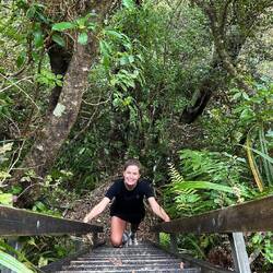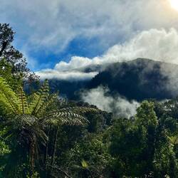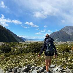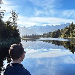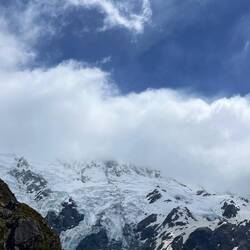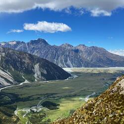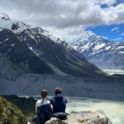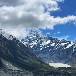 Da das Wetter immer besser wurde, sind wir auch in die zweite Wanderung gestartet, welche 2.200 Stufen in die Höhe führte. Und dort passierte es Gott sei Dank! Inmitten von Michaelas „scheiß Treppen“, „noch schlimmer als Joggen“ und „Ich hasse Treppensteigen“ Gemaule zeigte sich Mount Cook - dieses Mal der richtige! War definitiv unser Highlight.