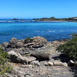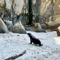 Nach der Begegnung haben wir die anderen Seelöwen aus guter Distanz dabei beobachtet, wie sie am Strand Sonne getankt haben. Da wir beide diese Tiere noch nie so nah in freier Wildbahn gesehen haben, war es ein echtes Highlight!