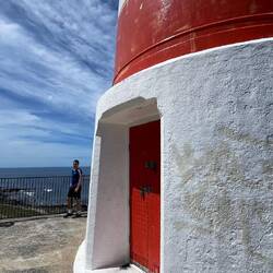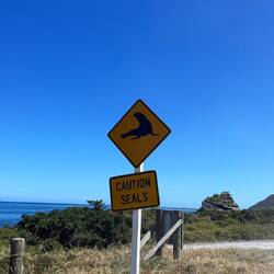 Mit etwas gedämpfter Laune meinerseits ging es los in Richtung südlicher Küste, wo wir einen tollen Leuchtturm besucht haben. Von diesem aus konnten wir an der Küste auch Robben erkennen, weshalb wir uns gleich auf den Weg dorthin gemacht haben. Wenn wir zu diesem Zeitpunkt das Wissen gehabt hätten, dass dort unzählige Robben ihr Quartier aufgeschlagen haben und sich unter den Sträuchern ausruhen, wären wir wohl nicht einfach direkt durch jene Sträucher dorthin gelaufen. Alter Finne haben wir uns erschrocken, als plötzlich ein riesiges Exemplar um die Ecke kam und uns angeknurrt hat. Ich bin vor Schreck ein paar Meter zurückgesprungen und Michaela hat die Opossum Taktik angewendet - einfach versteinert stehen bleiben. Da der Seelöwe (haben wir gegoogelt) am Fischbuffet gut zugeschlagen haben muss und nicht allzu agil aussah, würde ich meine Taktik im Nachgang immer noch als die empfehlenswerte ansehen. Gott sei Dank hatte er wohl mehr Angst vor uns und hat das Weite gesucht.