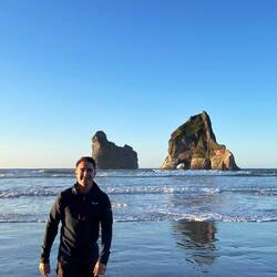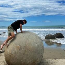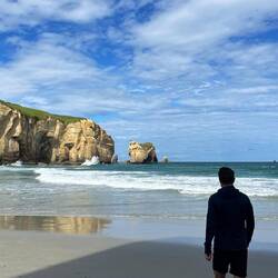 Auf der Fahrt haben wir die wunderschöne Fjordlandschaft bewundert und sogar eine Gruppe Delfine gesehen. Meiner Meinung nach ist auf einem der Bilder bei genauem Hinsehen sogar ein Orca zu sehen, aber da scheiden sich die Geister. Viel ist gestern auch nicht mehr passiert und wir sind nach dem langen Reisetag früh ins Bett. Heute waren wir im Abel-Tasman-Nationalpark unterwegs. Türkisblaues Wasser, Sandstrand und viele kleine Buchten haben die Wanderung zu einem Highlight gemacht! Am Zielstrand angekommen haben wir mit einem Wassertaxifahrer ausgemacht, dass wir in einer Stunde mit dem Boot zurückfahren dürfen (Tickets hätte man wohl eigentlich im Vorhinein buchen müssen, upsi) und er hat versichert, dass da noch Plätze frei sind. Als wir zur Abfahrtzeit bereitstanden, haben wir aber schnell Zweifel an der Glaubwürdigkeit des guten Manns bekommen, denn es waren außer uns noch 20 andere Menschen da, die mit auf das kleine Speedboot wollten. Da hab selbst ich ohne Mengenvorstellung schnell gecheckt: das wird wohl nix. Also sind wir im Highspeed zurück zum Auto marschiert und kamen nach 25 km sehr erschöpft und stolz an. Die Aktion hat unseren Tagesplan aber ganz schön durcheinander gebracht, denn wir wollten unbedingt den Sonnenuntergang am Wharariki Beach anschauen - die Technikfüchse unter der Leserschaft kennen diesen schon als Windows 10 Hintergrundbild. Wir sind also direkt zum Strand gedüst und als Abendessen mussten ein paar Cracker reichen. „Jetzt muss es aber auch schön werden bei dem ganzen Rumgef***e hier“, F. S. zur Straßenlage. Die alles entscheidende Frage: Hat es sich gelohnt? Ja, definitiv! Der Strand bekommt von uns 5/5 Sandkörnern. Die Felsen plus Sonnenuntergang waren wirklich beeindruckend und den Weg wert. Schön war’s!Read more
