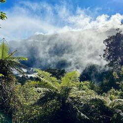 Aber der Reihe nach, denn gestern wollten wir ja am Vulkan Mount Taranaki wandern. Gott sei Dank haben wir uns diesen bereits am Vorabend angesehen, denn während der vierstündigen Wanderung haben wir ihn aufgrund Wolken und Nebel kein einziges Mal zu Gesicht bekommen. Da hatten wir das erste Mal etwas Pech mit dem Wetter und auch die Wanderung war kein Highlight (was in Neuseeland natürlich immer noch eine schöne Landschaft bedeutet).