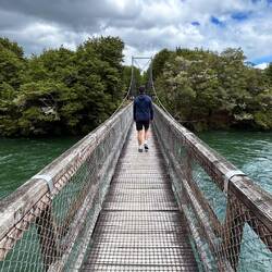 Heute war für die erste Tageshälfte wieder schlechtes Wetter angesagt, deshalb haben wir die Zeit für Orga-Kram und vor allem Planung für die ersten beiden Wochen auf der Südinsel genutzt. Nachmittags wollten wir noch ein bisschen raus und sind einen Küsten Track gelaufen. Zwar mussten wir noch im Regen starten, aber nach ein paar Kilometern gesellte sich die Sonne zu uns. Ebenfalls hatten wir immer wieder Gesellschaft von Schafen und mussten die ein oder andere Hängebrücke überqueren. Nicht wundern, dass auf den Bildern nur Michaela beim überschreiten dieser zu sehen ist - ich war damit beschäftigt nicht ohnmächtig zu werden und ohne Panikattacke auf der anderen Seite anzukommen.