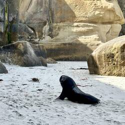 Auf dem heutigen Weg nach Dunedin, wo wir für eine Nacht einen Zwischenstopp einlegen, haben wir gleich zwei Wasserfälle, einen Leuchtturm sowie einen Strand, der nur durch einen Tunnel zu erreichen ist, besucht. An letzterem machte eine Robbe gerade eine kleine Schwimmpause und hatte so gar keine Scheu vor uns. Näher kommen wir wohl nie wieder an eine Robbe in freier Wildbahn.