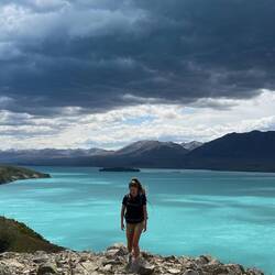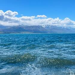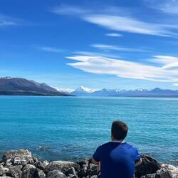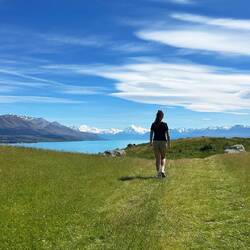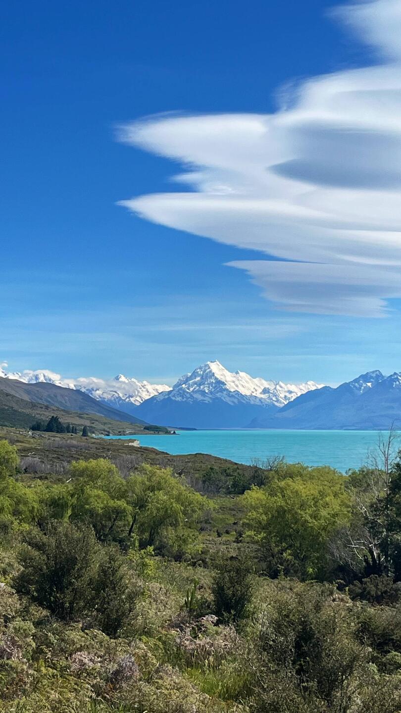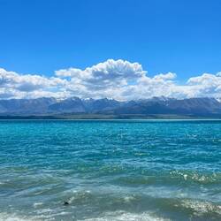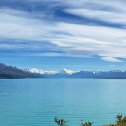 Danach ging es noch zum Lake Pukaki, der fast noch schöner war. Mount Cook versteckt sich diese Woche stark in einer Regenwolkendecke, aber wir konnten heute schon einen Blick erhaschen und werden weiter hartnäckig bleiben.