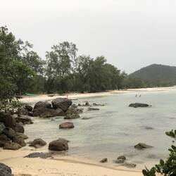 Dort angekommen ging das Theater weiter. Der Fahrer war so nett und klärte fast 1 Stunde alles Nötige. Um 17 Uhr konnte ich schließlich - 3 Stunden verspätet - auf die Fähre und es ging los. Die Fahrt ging ca. 50 KM ins offene Meer Richtung „Koh Rong“ und war jenseits von Gut und Böse. Es war so ein starker Wellengang, dass das Boot regelmäßig 2-3 Meter abhob, um anschließend wieder auf dem Wasser aufzuschlagen. Gegen Ende wurde es so heftig, dass jeder um sein Leben bangte und sich übergeben musste, so auch ich 🤣🤮🤢. Wirklich ein Höllentrip. Mir graut es jetzt schon wieder vor der Rückfahrt. Das Wetter soll am Samstag allerdings besser werden.