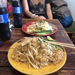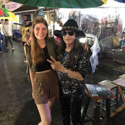 Während des Essens kam ein Herr auf uns zu, der wohl gehört hatte, dass wir deutsch sprechen. Wir unterhielten uns etwas und es stellte sich heraus, dass er der Mann der Besitzerin des „Naan Hostels“ ist. Ein deutscher Arzt aus Heidelberg, der sich vor etwa 10 Jahren während eines Trips nach Asien dazu entschied, in Bangkok zu bleiben. Er gab uns einige Insidertipps mit auf den Weg und checkte Susis Lymphknoten und ihren Hals bei der Gelegenheit gleich 😅 sehr praktisch. Sie lebt und wird wieder gesund 🥳, es kann sich allerdings noch etwas hinziehen.