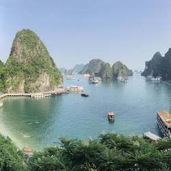 Weiter gehts! Wir sitzen im Bus Richtung „Ha long Bucht“, in der wir eine 2 tägige Schifffahrt mit Übernachtung und Programm gebucht haben. Drei bis sieben Stunden, je nach Verkehr, soll die Fahrt dauern. Susi gönnt sich etwas Ruhe neben mir und ich bringe zu Papier bzw. auf den Bildschirm, was wir gestern erlebt haben.