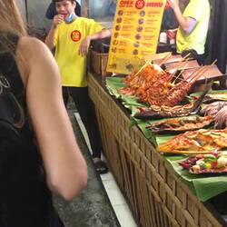Ich machte mich wieder auf Richtung Hauptgeschehen, eine Strandpromenade von ca. 300-400 m, mit etwa 20 Restaurants, mehr gibt es nicht auf meiner Seite der Insel. Alles sehr westlich und günstig, was mir aber ehrlich gesagt ganz recht ist. Schnell noch was gegessen, hier gibt es sehr viele frische Meeresfrüchte, herrlich!
