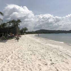 Dort angekommen ging das Theater weiter. Der Fahrer war so nett und klärte fast 1 Stunde alles Nötige. Um 17 Uhr konnte ich schließlich - 3 Stunden verspätet - auf die Fähre und es ging los. Die Fahrt ging ca. 50 KM ins offene Meer Richtung „Koh Rong“ und war jenseits von Gut und Böse. Es war so ein starker Wellengang, dass das Boot regelmäßig 2-3 Meter abhob, um anschließend wieder auf dem Wasser aufzuschlagen. Gegen Ende wurde es so heftig, dass jeder um sein Leben bangte und sich übergeben musste, so auch ich 🤣🤮🤢. Wirklich ein Höllentrip. Mir graut es jetzt schon wieder vor der Rückfahrt. Das Wetter soll am Samstag allerdings besser werden.