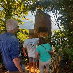 Left early this morning to catch a ferry from Seisia. The trip was over an hour to TI and once we arrived, we had organised a tour. Our tour guide called Mutti, drove us around the whole Island. Our first stop was at Pearl Island Seafoods. We bought some lobster tails for dinner. We then visited the cemetery and were given some history about the Japanese pearl divers graves. Mutti took us to Green Hill Fort to explore and later dropped us at the Gab Titui Cultural Centre. After lunch at the Grand Hotel, we explored the town centre and Bayo Beach.Read more