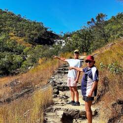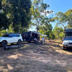 Arrived at Forsyth’s caravan park before lunch. We had lunch then headed off to do some fishing at Charleston dam. Jake caught a Long Tom fish but no luck with the Red Claw traps. We all had a splash in the dam to cool off. Back to our campsite, we then walked around Forsyth and explored the town’s history. We stopped in the only pub in town for a beer and then back to our campsite for $15 dinners and $5 beers, what a bargain!