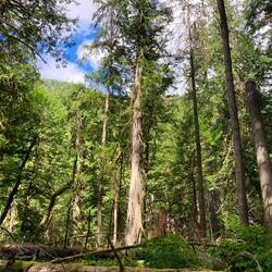Auf dem Weg von Parksville nach Tofino haben wir die zwei kleinen Trail Loops in Cathedral Grove gemacht. Ein alter Urwald mit grossen Bäumen.
