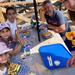 Zu Mittag gab es wieder Burger und Pommes. Dieses Mal aber bei einem Drive-In. Das Essen wurde zum Auto gebracht und mit einem Brett am Fenster befestigt.