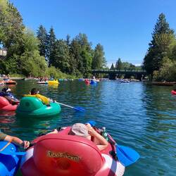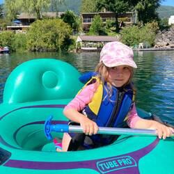 Wir feiern Anna‘s 6. Geburtstag in Port Renfrew. Es gab kleine Geschenke und einen Kuchen. Sie hat sich zum Geburtstag River Tubing gewünscht.