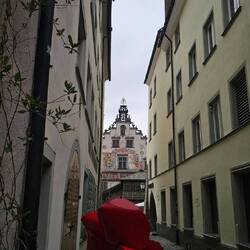 Ravensburg hat aus meiner Sicht einen ganz anderen Flair als Wangen oder die Bodensee-Städte. Es ist etwas lauter und belebter. Und vorallem hat Ravensburg Berge, die man über tausende Treppen erklimmen kann. Die haben mich ganz schön außer Atem gebracht.