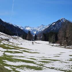 Auf Empfehlung eines Einzelnen, ging es für mich heute nach Oberstdorf zum Wandern und Dorf anschauen. Gegen 11 Uhr war ich auf den völlig überfüllten Parkplätzen unterwegs und entschied mich dann fürs teurere Parkhaus. Die Sonne schien, es war unglaublich warm und die Menschen kamen mir mit dicken Hosen, Jacken und Mützen entgegen. Es war doch ein skurriler Anblick. Einerseits sah ich Wanderer in Kurzer Hose mit Tshirt, andererseits die Ski- und Snowboardfahrer, die auf das Nebelhorn hinauf wollten. Da allerdings sogar im Tal noch Schnee lag, hab ich mir zur Sicherheit mal meine dicke Jacke, zusätzlich zur dünneren, Pullover, Langarmshirt und Mütze eingepackt. Der Rucksack war also entsprechend schwer, als ich mich auf den Weg durch das Oytal machte. Zunächst war der Anstieg ganz schön steil, im späteren Verlauf war die Strecke aber recht flach. Über Komoot hatte ich mir heute früh ein paar Touren abgespeichert, die ich je nach Lust und Laune zusammenbasteln könnte. Als ich das Ziel der Strecke erreicht habe, musste ich leider erkennen, dass ich einen kleinen Planungsfehler gemacht habe. Die letzten beiden Tage schon habe ich immer wieder festgestellt, dass Schnee auch auf mittlerer Höhe liegt. Und so stand ich am Wegesende, bevor ich umdrehen musste, vor einem Schneeberg, der den dahibterliegenden schneebedeckten Wanderweg versperrte. An dieser Stelle habe ich mich einer Gruppe junger Wanderer (aus Mannheim, wie sich herausstellte) angeschlossen und wir sind zu 5. den vereisten Wanderweg weitergestapft. Wir haben nur knapp 1km geschafft, weil es unheimlich anstrengend war und wir teilweise bis über das Knie im Schnee eingesunken sind. Aber es hat Spaß gemacht. Neben der schönen Landschaft konnten wir auch zwei (kleinere) Schneelawinen an den Berghängen beobachten. Die dadurch entstandene Geräuschkulisse erinnerte uns eher an einen Wasserfall. Das war schon krass. Der Rückweg war dann schon etwas entspannter, weil die Sonne (ich bin nur in Tshirt unterwegs gewesen) ordentlich den Schnee zum schmelzen gebracht hat. An einer Gaststätte hab ich die Truppe wieder verabschiedet und bin zurück nach Oberstdorf entlang des Oybachs gewandert. Der Teil des Weges war nochmal anders schön, direkt am glasklaren, teilweise hellblauem Fluss entlang. Zurück in Oberstdorf hab ich erstmal meinen Rucksack von den schweren Klamotten befreit und bin dann in die Innenstadt zum Handwerkermarkt gegangen. Dort gab es noch einen Crêpes für mich, bevor ich hoch in Richtung Skisprungschanze ging. Da habe ich mich aber mit der Audi-Arena zufrieden gegeben und bin nicht bis ganz nach oben. Dieser gewaltige Ausblick war gleichzeitig das Ende meines Ausflugs. Kurz nach 17 Uhr ging es dann wieder zurück Richtung Wangen, wo ich mir jetzz in Hotel noch die Sauna gönne.Read more