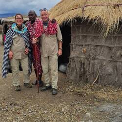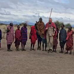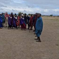 Auf dem Wege zum Dorf kaufte ich Grundnahrungsmittel, Seife und Süßkartoffeln als Geschenke für die Massai ein. Es war ein überwältigender Empfang. Es wurde gesungen und getanzt. Wir bekamenLue lisää