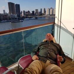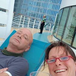 Es dämmerte noch als die Aida in Rotterdam ankam. Es war Dieters 60. Geburtstag... Happy birthday....