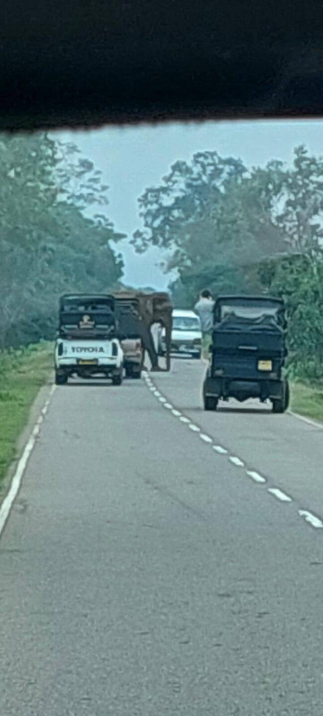 Mit dem Tuk Tuk durch Sri LankTravelerAusgebremst... February 16 in Sri Lanka ⋅ ☁️ 27 °C Nicht ganz ungefährlich so ein ausgewachsener Elefant 🐘 See translation0 likes Trip