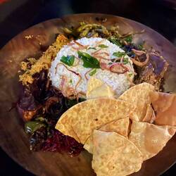 Leckeren Lunch gab es in einen Local Restaurant. Es war ein Buffet mit vielen Currys aus regionalem Gemüse und etwas Fleisch. Ein Kellner erklärte uns erstmal was es alles für Gemüse 🍆 waren .Leia mais