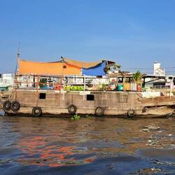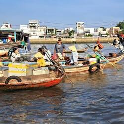 This morning at 07:00 embark and went into the heart of the Cai Rang floating market, where we saw a maze of boats loaded with fruits, vegetables, or groceries for trade. Then our tour guide took usRead more