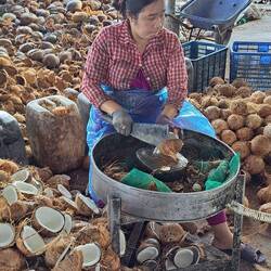 We biked 10 miles through town to the coconut processing factory. Got a feel of riding bike on the roads sharing with cars and motor bikes. We survived!!!