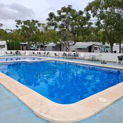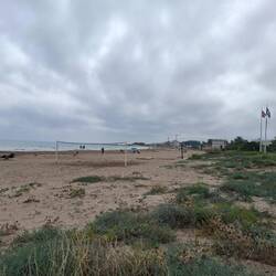 Rund 105 Kilometer weiter ein 14 Euro (ohne Strom, kostet 3,50 Euro) Stellplatz, mit Sanitärgebäude, etwa 700 m vom Strand. Nicht sonderlich breite Stellflächen, typischer spanischer StellplatzLeia mais