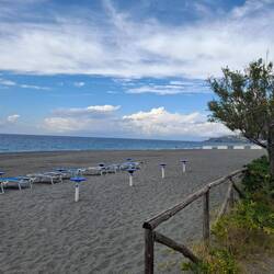 "Area Camper Dolce Vita Scalea. Privat ausgestatteter Wohnmobil am Meer, an der Zedernküste neben der Stadt Scalea, wenige Minuten mit einem bequemen und sicheren Radweg ca.700 m. Schwimmeinrichtungen oder Strand." Quelle park4night