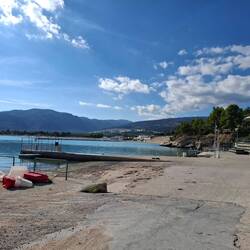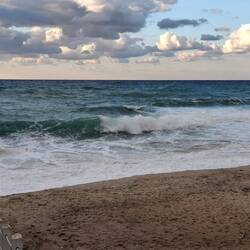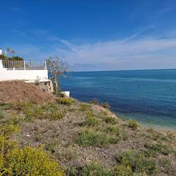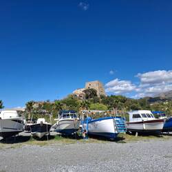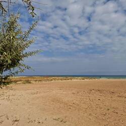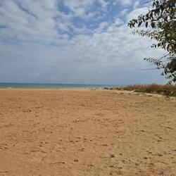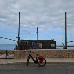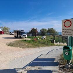 Zwei Stellplätze auf dem Weg zum Gargano angesehen, beide leer, dass hatte auch seinen Grund, fürchterliche Umgebung. Der dritte Platz bereits auf dem Gargano, niedrige Bäume, nur für Minicamper geeignet. Jetzt auf einen großen, ab Oktober gebührenfreien, Parkplatz am "Porto di Manfredonia" bei Mattinata, Strand und Hafen, sogar zwei kleine Ausgrabungsstätten. Die Carabinieri fuhren am Nachmittag und am Abend über den Platz, sie ignorierten uns.