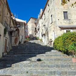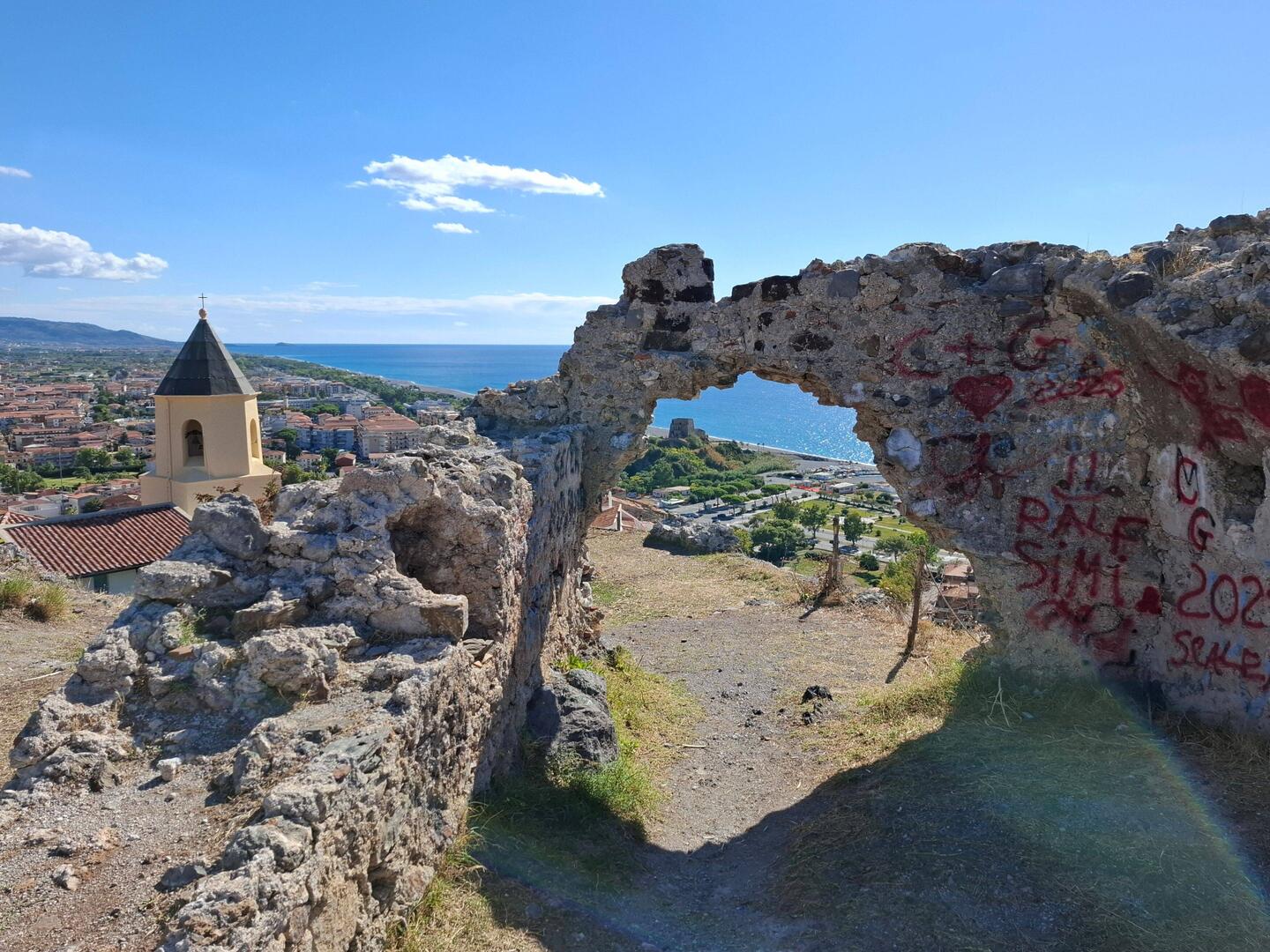 "Die Burg Scalea, auch bekannt als Ruine der normannischen Burg, ist die Ruine einer Burg aus dem 11. oder 12. Jahrhundert, die auf einem Felsvorsprung oberhalb der Stadt Scalea erbaut wurde. Nur die Umfassungsmauern und ein Turm sind noch sichtbar. Einer Legende zufolge ist die Burg durch einen unterirdischen Gang mit dem antiken Torre Talao verbunden, der auf einem imposanten Felsen steht." Quelle Wikipedia