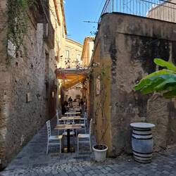 Dem Tourismus sind die vielen Restaurants in allen Preislagen geschuldet. Am späten Nachmittag bis zum Abend auf der Piazza Ercole in der "Pizzeria Da Titino dal 1975" lange entspannt draußen gesessen, super freundliche Bedienung. Wein getrunken, Leute beobachtet und lecker gegessen.