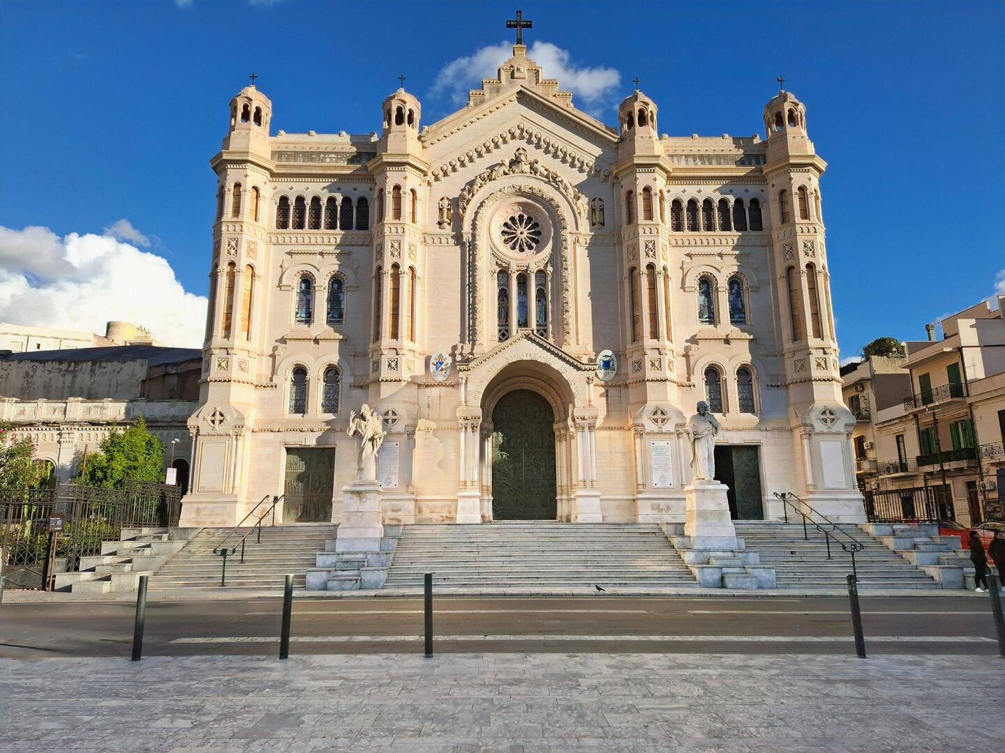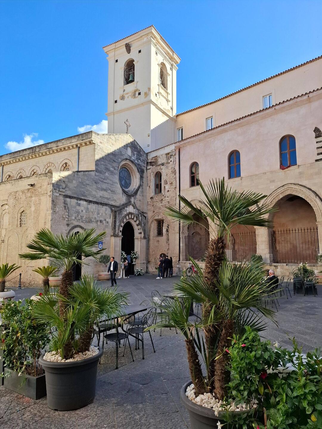 Die Kathedrale wurde 1163 während der normannischen Herrschaft erbaut und der Santa Maria Assunta geweiht. Das Gebäude hat einen basilikalen Grundriss mit drei Kirchenschiffen und ist durch achteckige Säulen und bunten Quadern, wie es die Tradition der sizilianisch-normannischen Romanik vorsieht. Wegen Erdbeben und Brände wurde sie im Laufe der Jahrhunderte mehrmals umgebaut. Zwischen 1926 und 1931 wurde sie wieder in seinen ursprünglichen Zustand versetzt." Text von einer Tafel