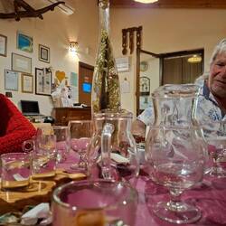 Der Abend endete in der gemütlichen Gaststube des Agricampings, mit netten Tischnachbarn. Nach anfangs vielen kleinen Häppchen, ein Menü, dass Völlegefühl verursacht hat... alles solide und gut. Der Kräutergrappa Rudi half ein wenig darüber hinweg zu kommen... 😎