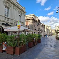 Die Fahrt durch die Vorstadt brachte die Erkenntnis, hier möchte man nicht leben wollen. Unter dem Strich hat uns Stadt nicht sonderlich gut gefallen, oder wir haben die richtige Stellen verpasst. Das könnte aber auch an dem verheerendes Erdbeben im Jahr 1908 gelegen haben, es zerstörte große Teile der Stadt, was zu ihrem Wiederaufbau führte. Insgesamt wurde die Stadt mal im Schachbrettmuster geplant. Die unendlich lange gerade Fußgängerzone "Corso Giuseppe Garibaldi" war irgendwie nicht "gemütlich".