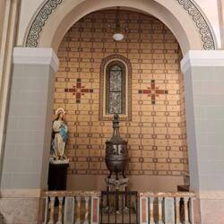"Die Kathedrale ist ein Zeichen der Einheit als bevorzugter Treffpunkt für das Volk Gottes, das sich um seinen Bischof versammelt." Inschrift am Eingang