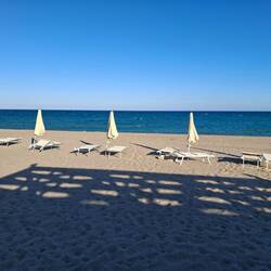 Nach rund 350 Kilometern sind wir nun auf einem 2 bzw. 5-Euro-Platz mit Strom (Nebensaison) in Porto Potenza Picena, ohne besonderen Charme, etwa 500 Meter vom Strand entfernt. Ver- und Entsorgung vorhanden. Immerhin, die Sonne scheint! 🌞