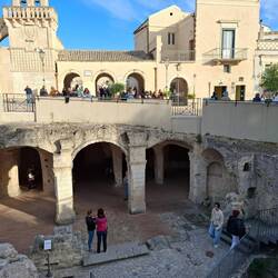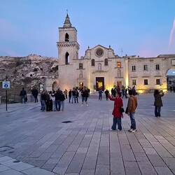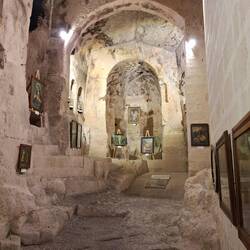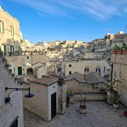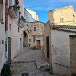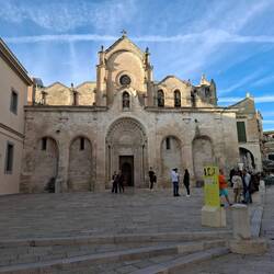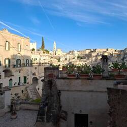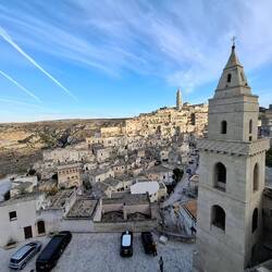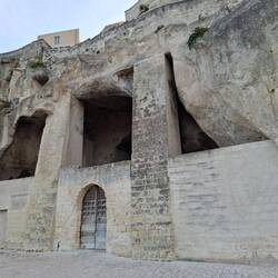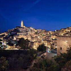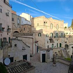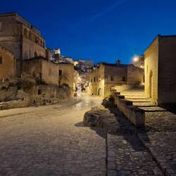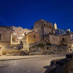 "Matera ist eine Stadt auf einer felsigen Landzunge in der Region Basilicata im Süden Italiens. Hier befinden sich die Sassi, ein Komplex aus Höhlensiedlungen, die in die Felswand geschlagen wurden. Nachdem sie 1952 aufgrund von schlechten Lebensbedingungen geräumt wurden, beherbergen die Sassi heute Museen wie die Casa Grotta di Vico Solitario mit historischen Möbeln und Künstlerwerkzeug. Zu den nahe gelegenen Felskirchen gehört St. Lucia alle Malve mit Fresken aus dem 13. Jahrhundert." Quelle WikipediaRead more