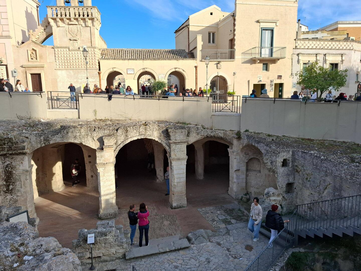 "In Matera wurde die Trinkwasserversorgung vom Rathaus über einige Brunnen und fünf große öffentliche Zisternen sichergestellt, in denen Quellwasser gesammelt wurde, die so genannten I Palombari. Darüber hinaus gab es Hunderte von privaten Zisternen, in denen Regenwasser für andere Zwecke als zum Trinken gesammelt wurde. Der „Palombaro lungo" ist die größte Zisterne der Stadt und besteht aus einer künstlichen Ausgrabung, die in mehreren Etappen ab dem 16. Jahrundert realisiert wurde.
