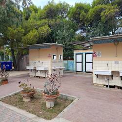 Stromanschluss, Camperservice, Spülbecken für Geschirr und Kleidung, WC.