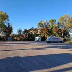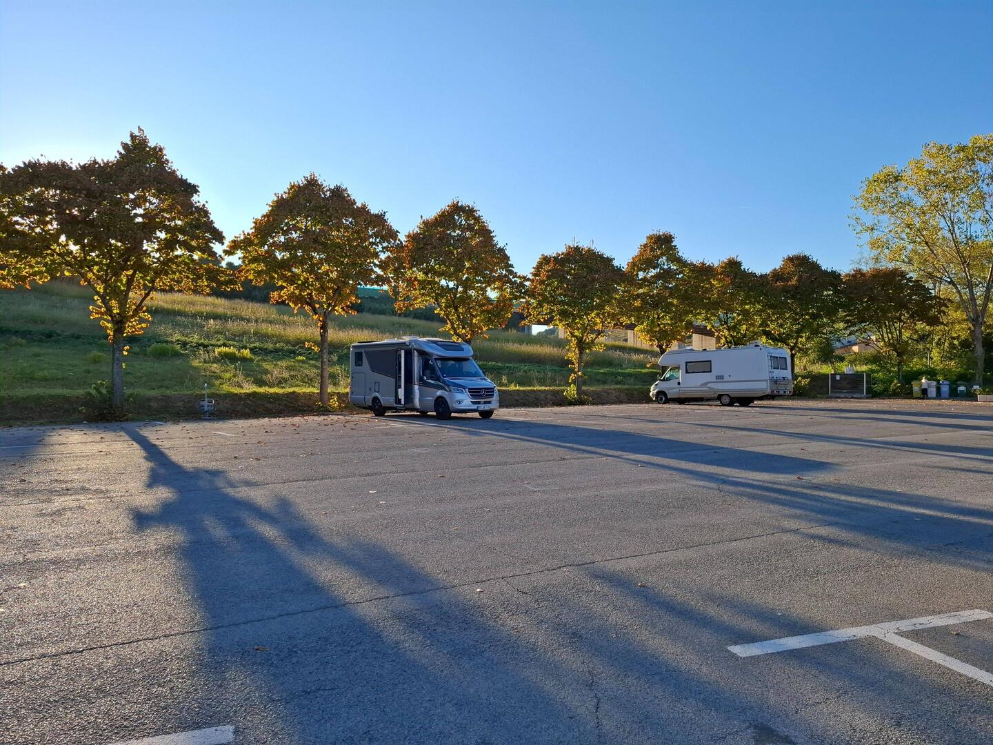 Jetzt im Oktober 20 Euro mit Strom plus 1,50 Euro pro Person örtliche Taxe. Einen der letzten Plätze bekommen, in Reihe, hinten 3 Tage, wir 2 Tage, vor uns kommt noch ein Camper der einen Tag bleibt. Alles gut... 😎